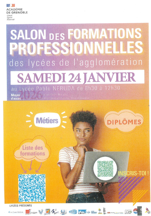 Le Salon des Formations Professionnelles aura lieu ce samedi 24 janvier 2026, de 8h30 à 12h30, au Lycée Pablo NERUDA.