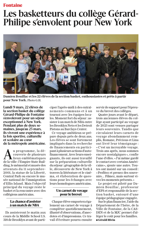 Voyage à New York avec les 22 élèves de la section Basket du 9 au 25 mars 2026! C'est parti !