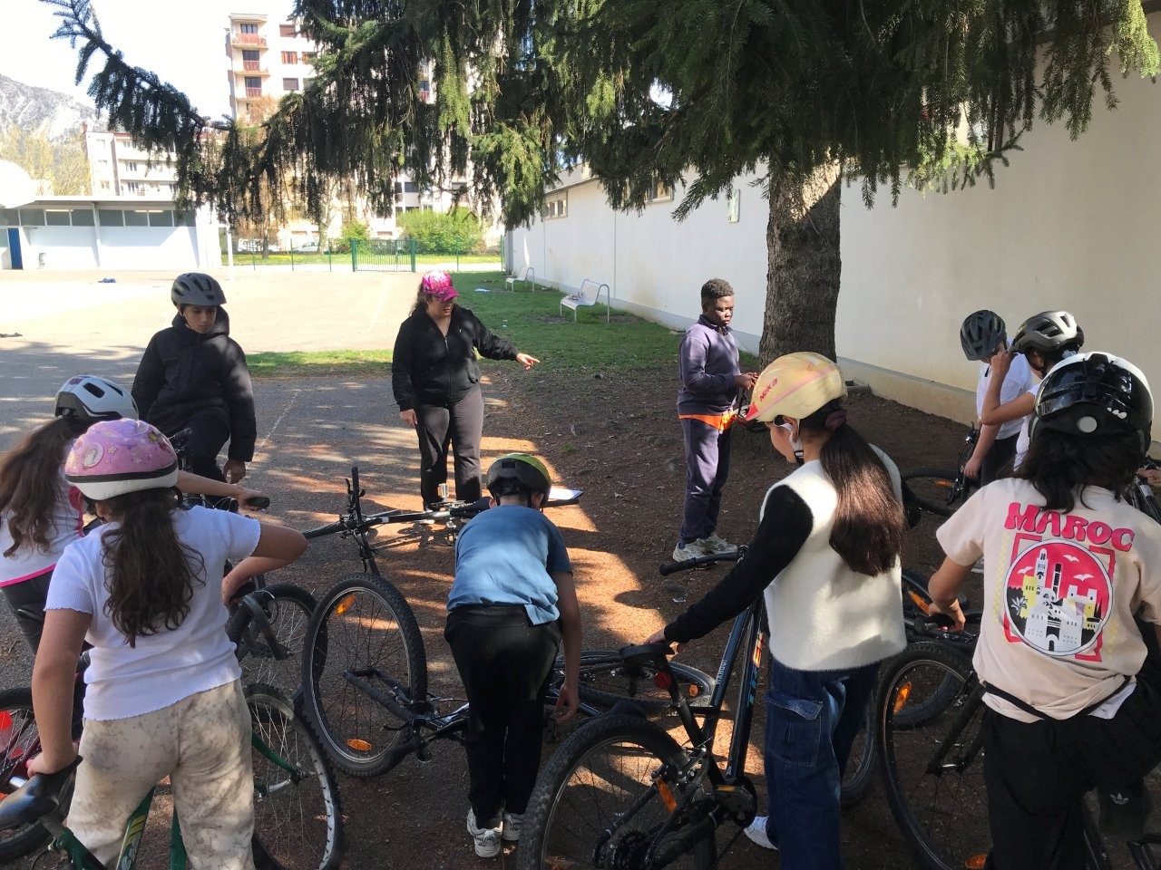 Atelier vélo à l'école Marcel Cachin avec les élèves de 5ème SEGPA