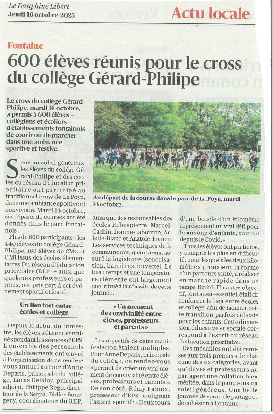 Le cross a eu lieu sous un beau soleil en présence de nombreux parents venus assister les équipes du collège ou venus voir courir leurs enfants.
